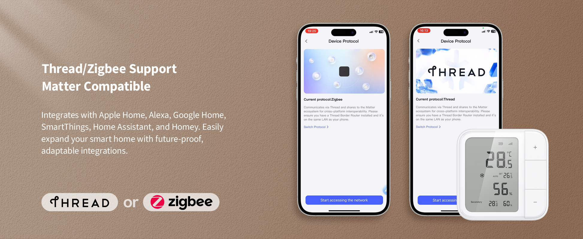 The three custom buttons can be used to control other smart home devices, and it also supports binding with thermostat devices for wireless control. At the same time, the device also supports access to the Matter ecosystem, or access to the Aqara Home with the Aqara hub, so as to provide a more convenient smart home experience with other smart devices.
