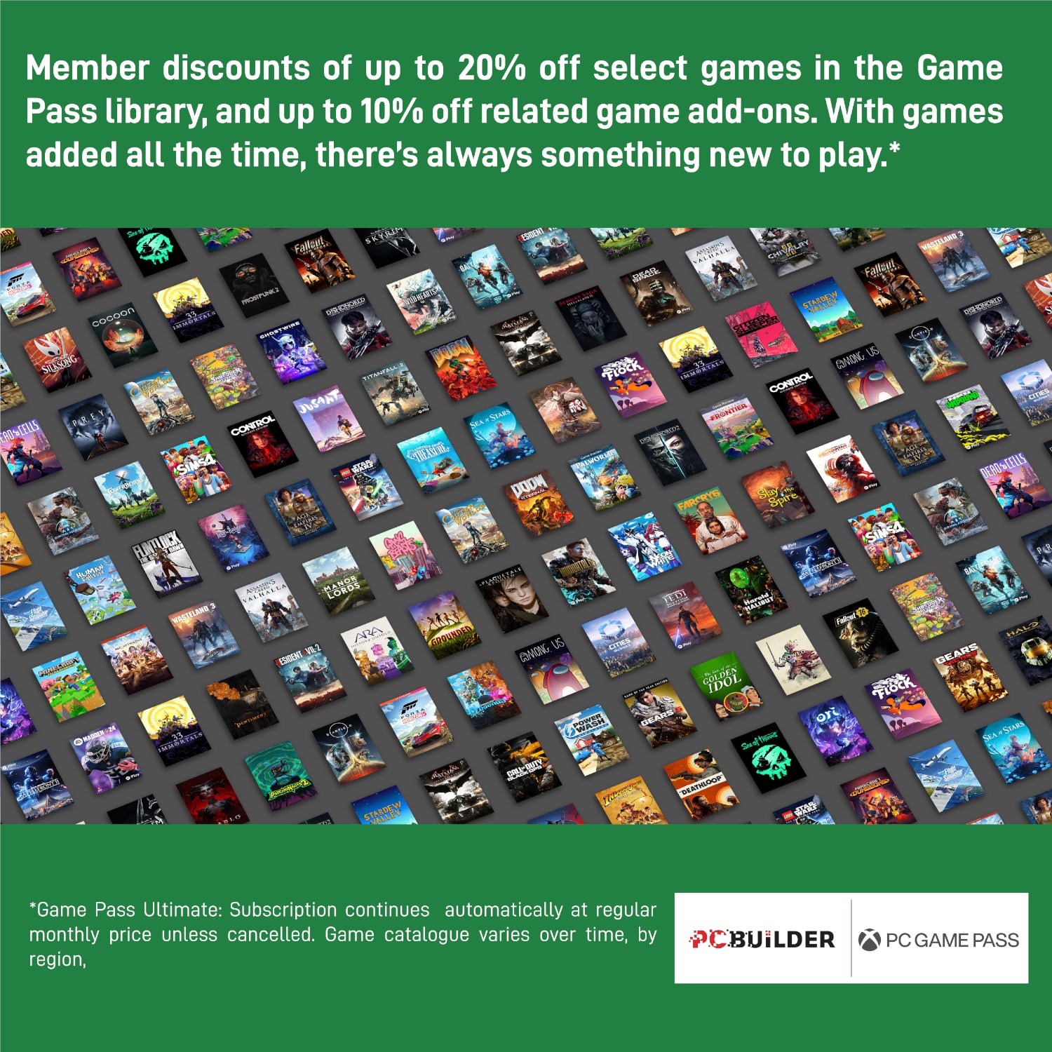 - Play over 100 high-quality PC games like Halo Infinite, Forza Horizon 5 and Teenage Mutant Ninja Turtles: Shredder’s Revenge with your new build and one month of PC Game Pass including EA Play. With new games being added all the time, there’s always something new to play from day one.